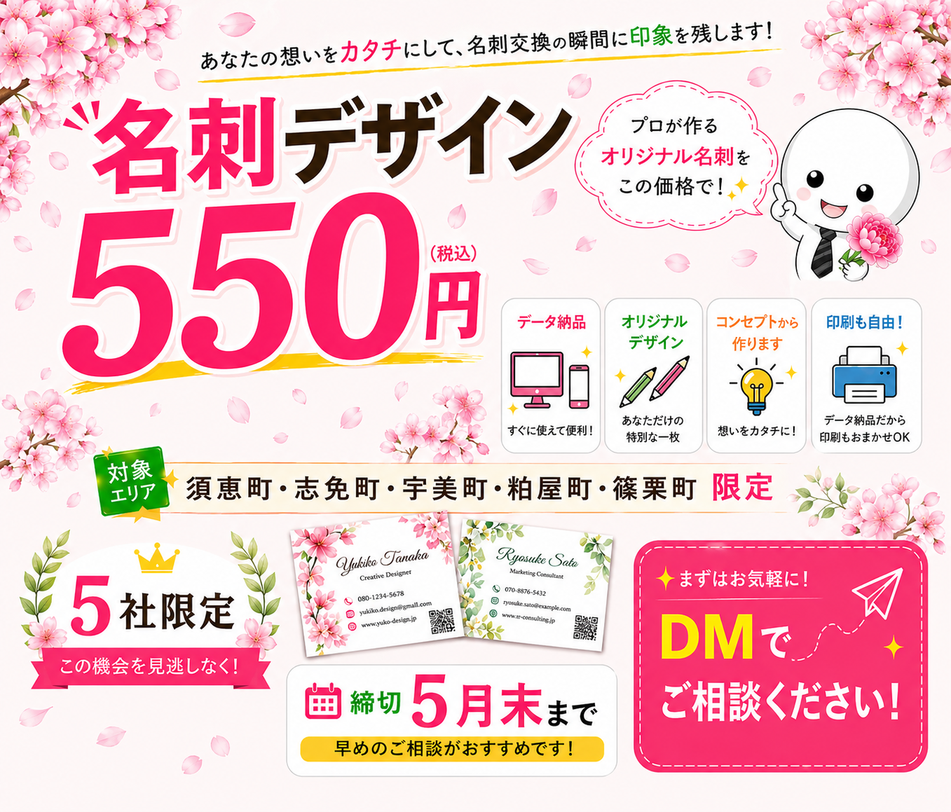 事業内容に合わせたオリジナル名刺が550円で作れます